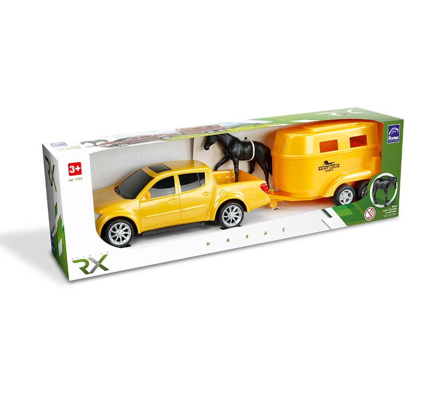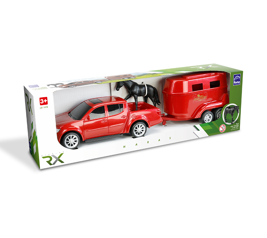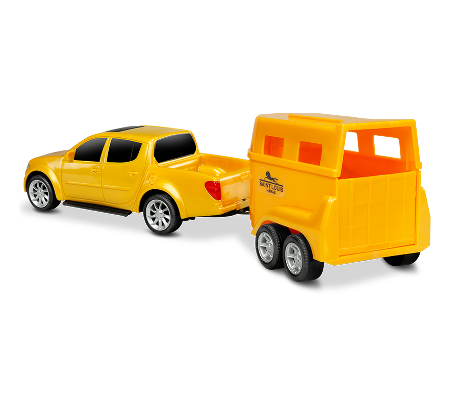 A vida no campo nunca foi tão divertida! A Pick-Up Haras chega acelerando rumo às aventuras da fazenda, pronta para transportar seus cavalos com conforto e segurança. Com design robusto e super detalhado, cada pick-up vem acompanhada de um trailer exclusivo e um lindo cavalo, criando o cenário perfeito para cuidar, treinar e passear com seus animais preferidos. É só engatar o reboque, ligar o motor da imaginação e partir para mais um dia cheio de emoção no haras! Feita para pequenos fazendeiros e amantes da vida rural, a Pick-Up Haras combina potência, estilo e diversão — o brinquedo ideal para quem adora o mundo dos cavalos e o espírito da estrada de terra.