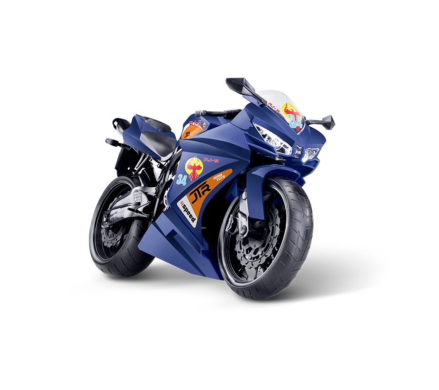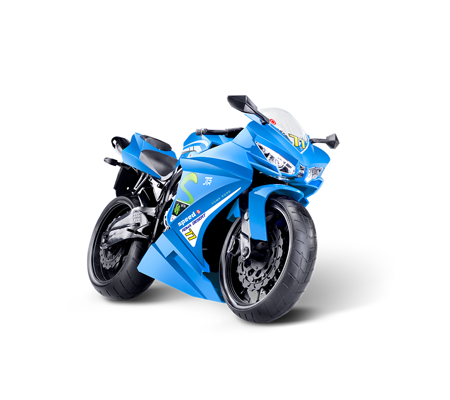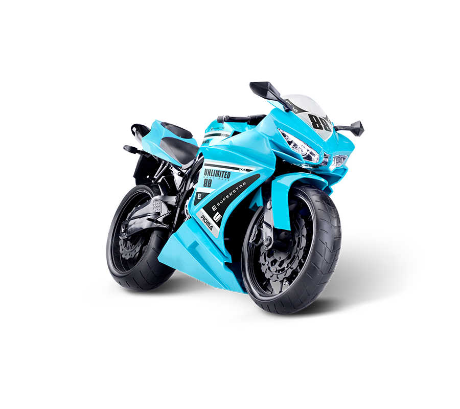 Uma super moto com mais de 34 cm de comprimento, adesivada, com rodas de borracha e disponível em várias cores para simular uma disputa real de corrida (times) de motos esportivas. Disponível em 8 versões com adesivagens personalizadas. Perfeitas para brincar e colecionar.
