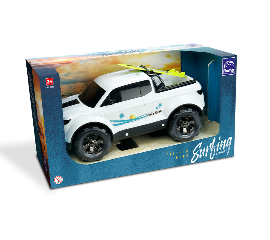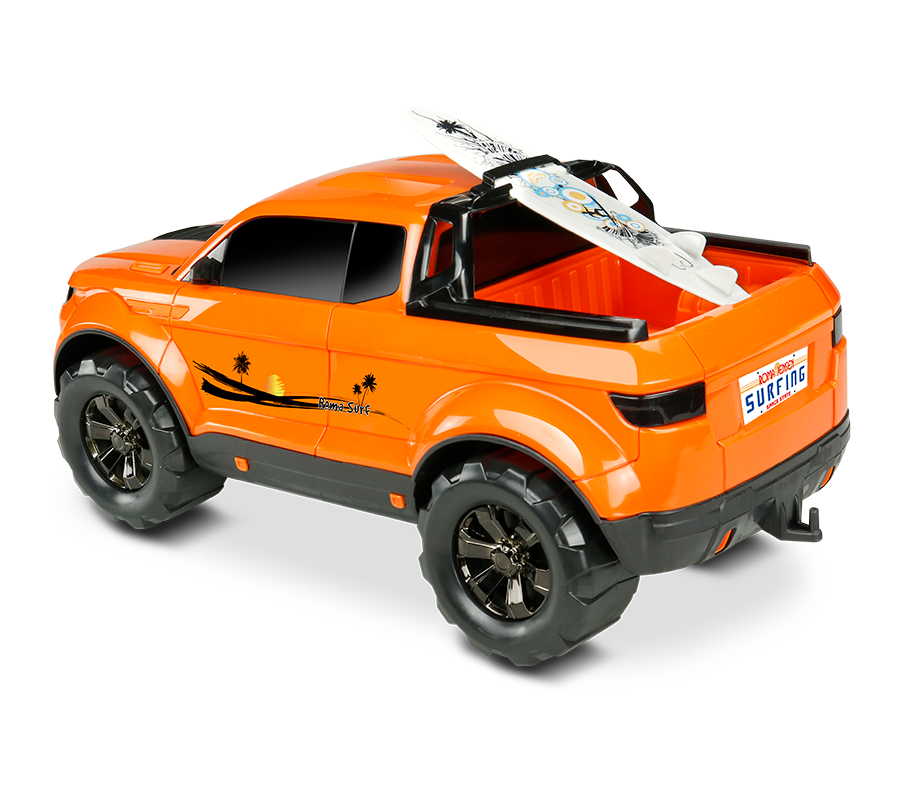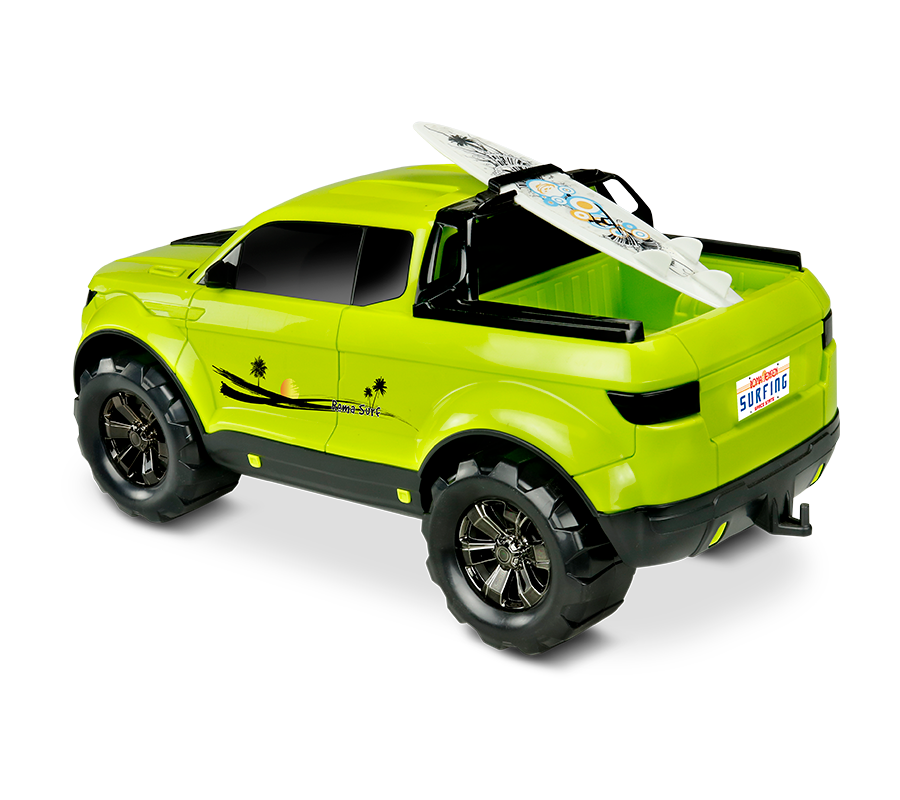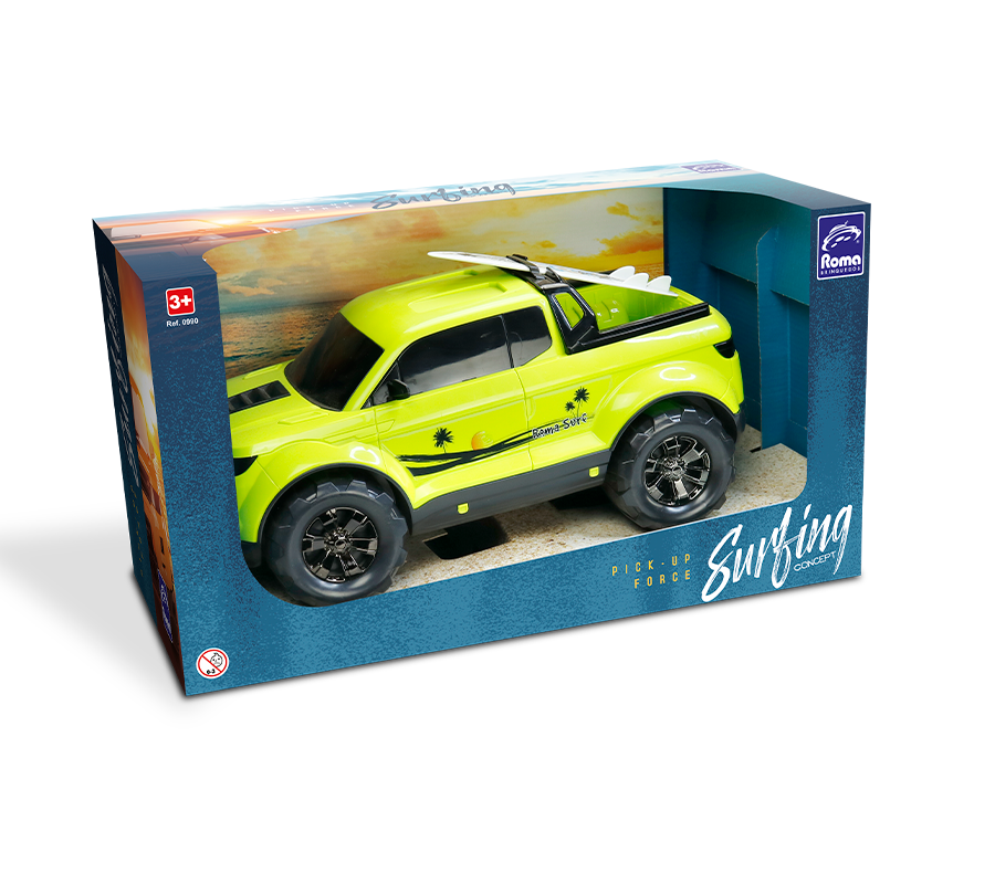 A estrada te chama e o sol brilha lá no horizonte! Com a Pick-Up Force Surfing Concept, a aventura começa onde termina o asfalto. Inspirada no espírito livre do surf e das viagens de verão, essa super pick-up leva a imaginação das crianças para trilhas cheias de emoção e diversão. Com design moderno, cores vibrantes e estilo aventureiro, ela está pronta para encarar qualquer desafio, da praia ao quintal! Disponível nas cores: vermelha, laranja, amarela, verde, branca e preta. Acelere, imagine, explore... porque com a Pick-Up Force, cada brincadeira é uma viagem inesquecível!
