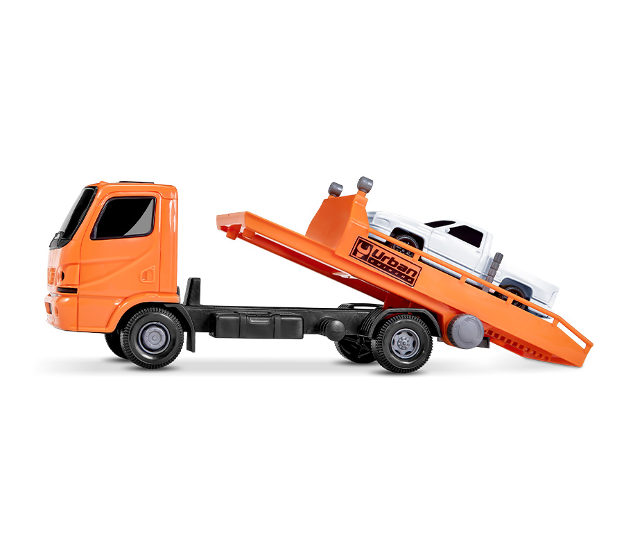 Esse incrível caminhão de resgate vem com uma mini picape para rebocar, pronto para salvar o dia nas ruas da cidade imaginária das crianças. Seu design é moderno, as cores são vibrantes, possui rampa deslizante e sistema que trava a caminhonete na plataforma que deixa a brincadeira ainda mais realista e empolgante. Ideal para pequenos que adoram aventuras com carros, máquinas e muita imaginação! Complete sua frota com outros modelos da linha Urban e crie uma cidade cheia de movimento, trabalho e diversão!