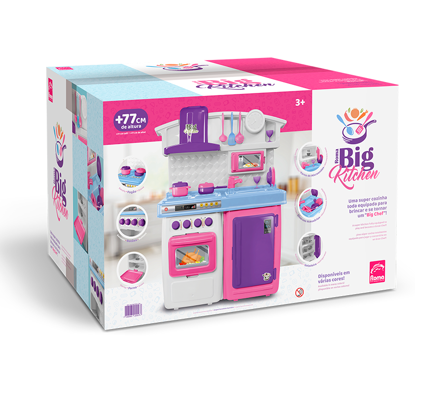 Transforme a brincadeira em uma verdadeira aventura culinária com a Roma Big Kitchen! Transforma o brincar em uma deliciosa aventura culinária, cada detalhe foi pensado para estimular a imaginação e o faz de conta das pequenas cozinheiras, com cores vibrantes e acessórios encantadores. Ideal para desenvolver coordenação motora, imaginação e o amor por criar histórias saborosas! Com mais de 77 cm de altura, essa cozinha montável traz geladeira, microondas, forno e fogão lúdico. Acompanha panelas, utensílios e pratinhos para uma experiência completa. Ideal para crianças acima de 3 anos soltarem a imaginação e virarem grandes chefs! Aqui, cada prato é uma nova descoberta, cada mistura é uma risada, e cada brincadeira vira um banquete de criatividade!