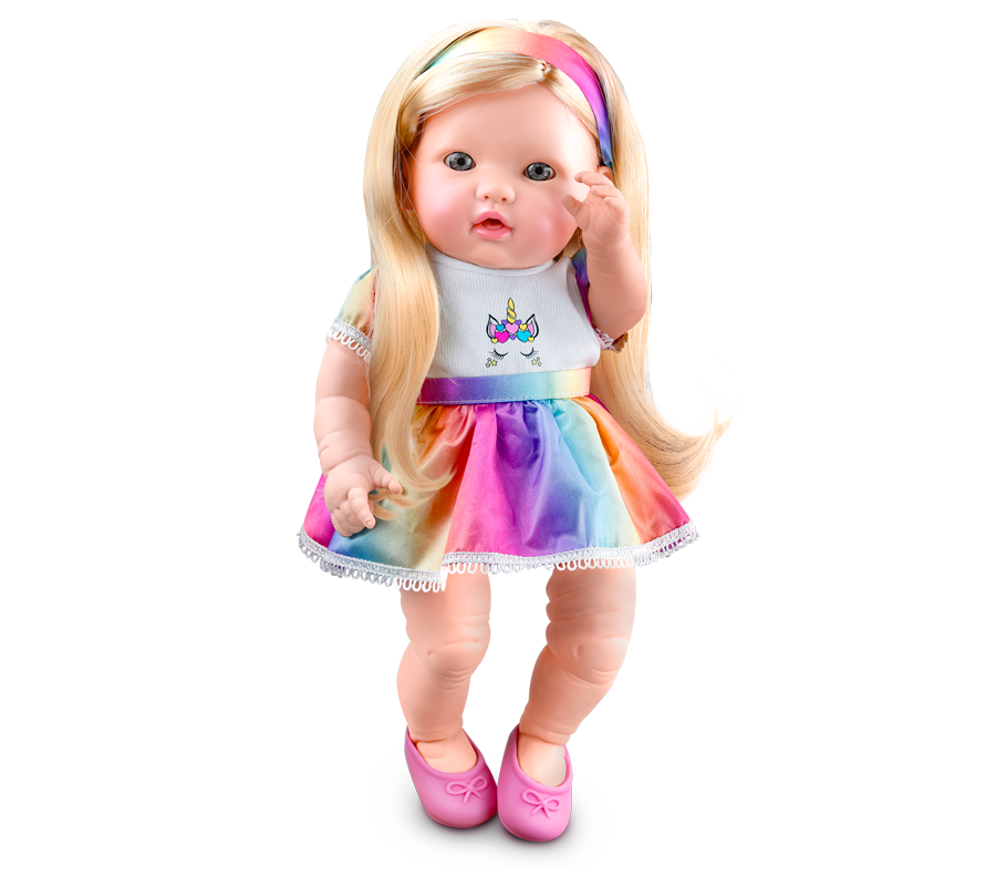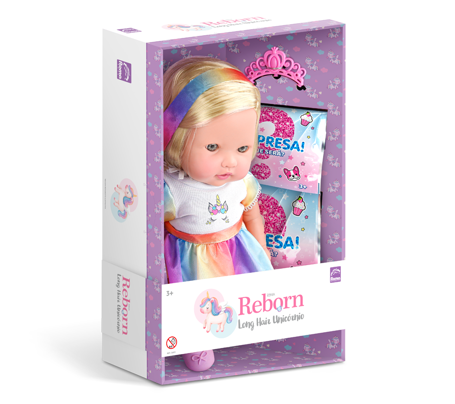 A magia dos unicórnios ganhou vida com esse boneco encantador da linha Roma Reborn! Com cabelos longos e loiros para criar penteados incríveis, ele vem com uma tiara temática e dois saquinhos com acessórios surpresa que tornam a brincadeira ainda mais especial. Feito com membros em vinil atóxico e corpo em tecido, é perfeito para estimular a imaginação, o cuidado e a fantasia. Um verdadeiro sonho em forma de boneca!