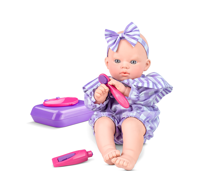 A boneca Roma Babies – Banho & Sonho convida as crianças a explorarem o universo do cuidado e da higiene com muito carinho e diversão. Feita em vinil atóxico com toque suave e aquele cheirinho de bebê, ela vem com acessórios lúdicos como porta lenço, escova de dente e frasco de pasta, que ajudam a ensinar sobre os primeiros hábitos de higiene e o cuidado com os dentinhos. Sua roupinha colorida e listrada, combinada com uma charmosa tiara com lacinho, completa o visual encantador. Ideal para estimular a imaginação e reforçar valores de saúde e bem-estar desde cedo. Um presente que transforma o brincar em aprendizado!