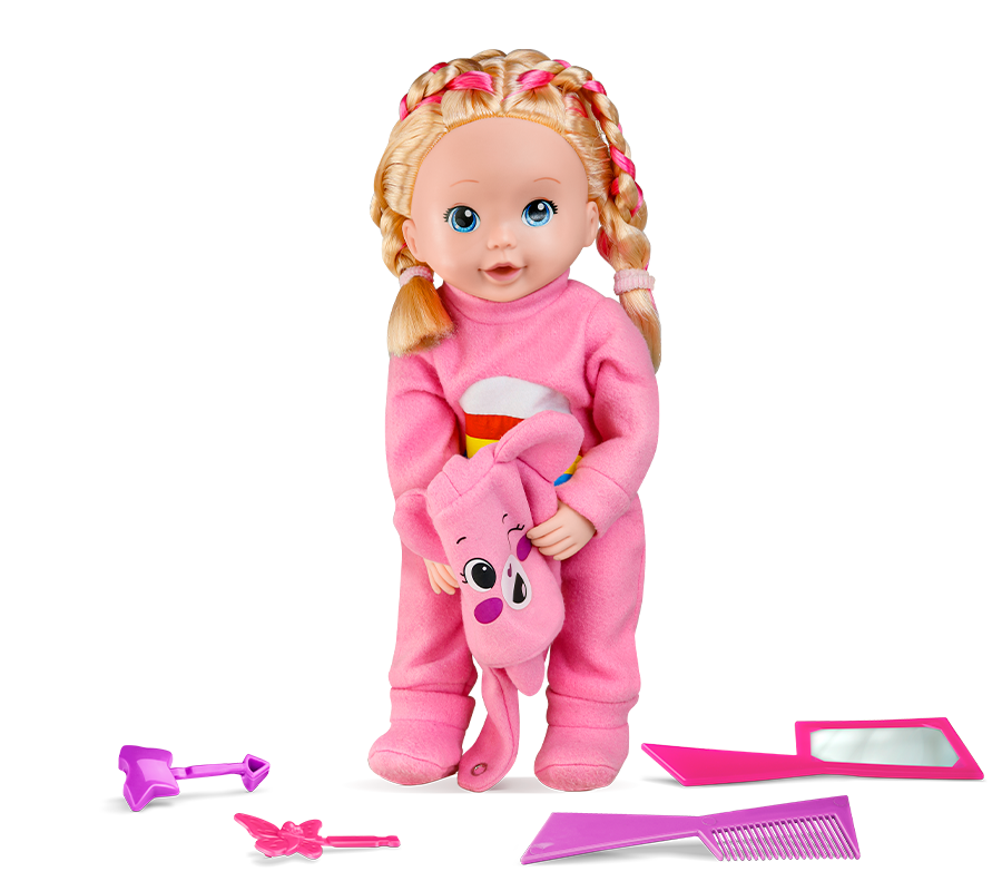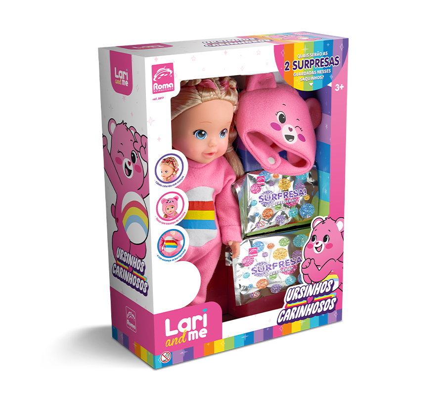 Com a Lari & Me Ursinhos Carinhosos, cada dia é uma nova aventura de amizade e carinho! Vestida com um fofíssimo pijaminha rosa estampado com arco-íris e acompanhada de um adorável ursinho, ela é perfeita para momentos de aconchego e muita imaginação. Seu lindo cabelo trançado é um convite para soltar a criatividade, use o pente, o espelho e os acessórios de cabelo que vêm junto e crie penteados incríveis para deixar a Lari ainda mais charmosa! Mais do que uma boneca, Lari é uma verdadeira companheira para brincar, cuidar e compartilhar sonhos. Lari & Me Ursinhos Carinhosos – porque brincar de amor e amizade nunca sai de moda!