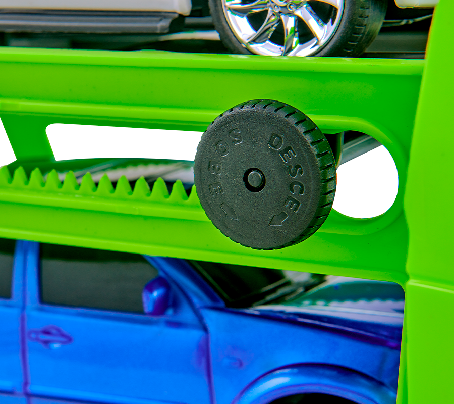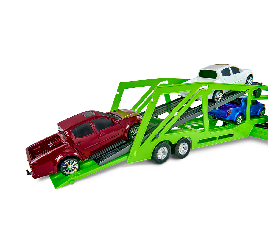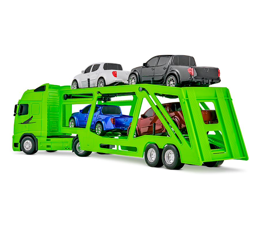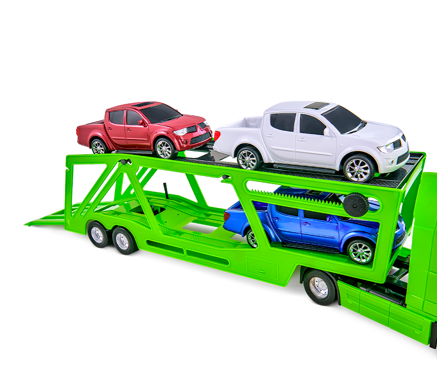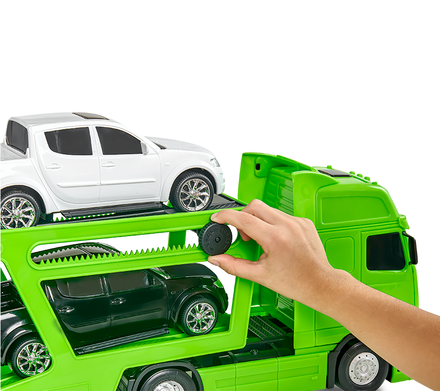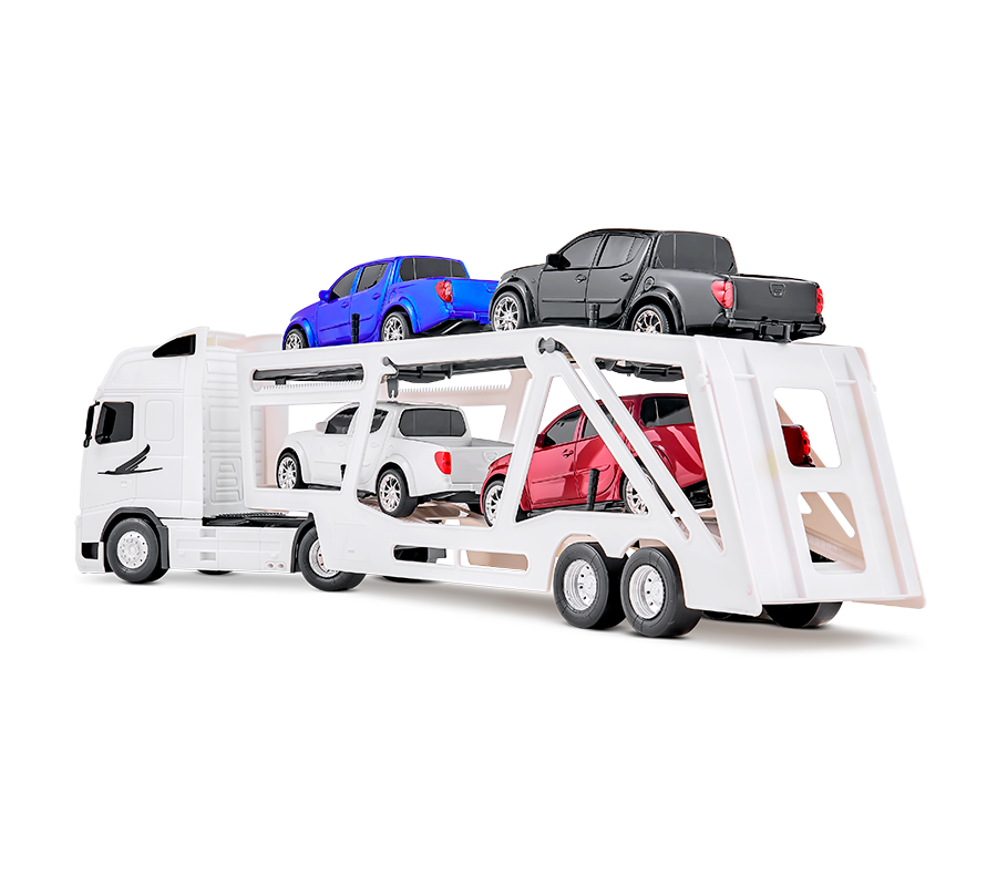 Prepare-se para pegar a estrada com potência total! A Roma Diesel – Cegonheira é o caminhão dos sonhos para quem ama o mundo sobre rodas. Forte, imponente e cheia de estilo, ela carrega sua frota de carrinhos com segurança e muito realismo, pronta para longas viagens e grandes entregas! Com design robusto e repleto de detalhes, essa super cegonha vem com diversos veículos a bordo, possui quase 1 metro de comprimento, vem com 4 Pick-ups de cores sortidas, possui rampa móvel e sistema de trava das Pick-up na rampa. O motor da brincadeira não para: é só acelerar a imaginação e levar os carros para novas cidades, corridas e destinos incríveis! Um brinquedo completo que transforma qualquer brincadeira em uma verdadeira expedição sobre rodas!