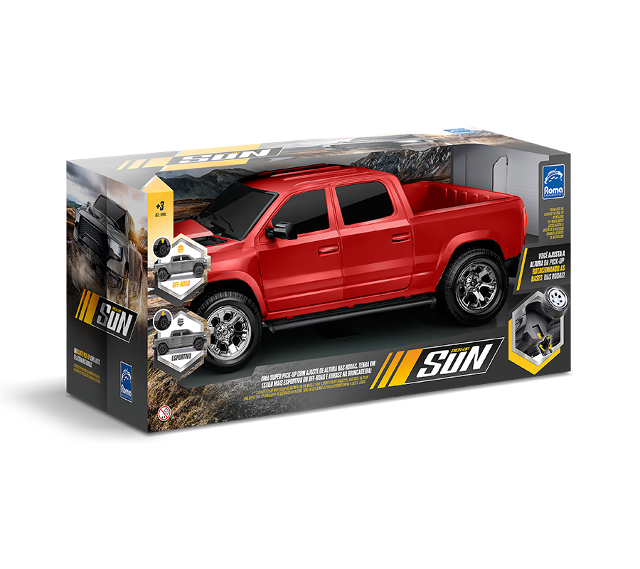 Sinta o vento, o sol e a liberdade de pegar a estrada com a Pick-Up Sun! Com design robusto e realista, ela é perfeita para aventuras sob o pôr do sol e viagens cheias de imaginação, suas rodas livres garantem uma direção suave e muita diversão em qualquer terreno. Disponível em várias cores, essa pick-up convida os pequenos a explorarem novos caminhos, viverem grandes histórias sobre quatro rodas e traz toda a emoção das grandes estradas para as brincadeiras, a diversão começa quando o motor da imaginação liga!