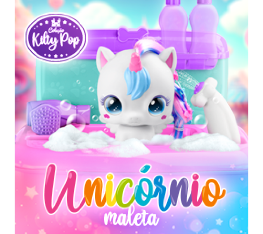A Maleta Unicórnio Surpresinha da linha Kilty Pop é o brinquedo perfeito para crianças que adoram cuidar e brincar com muito estilo! Com temática encantadora de pet shop mágico, ela vem com um unicórnio em vinil com cabelo colorido, pronto para receber um banho especial com a duchinha que funciona de verdade! Acompanha pente, secador lúdico e dois frascos para shampoo e condicionador, tornando a brincadeira ainda mais completa. Compacta e prática, a maleta permite que os pequenos levem seu unicórnio para qualquer lugar—seja em casa, na escola ou nas férias. É diversão portátil com um toque de fantasia!
