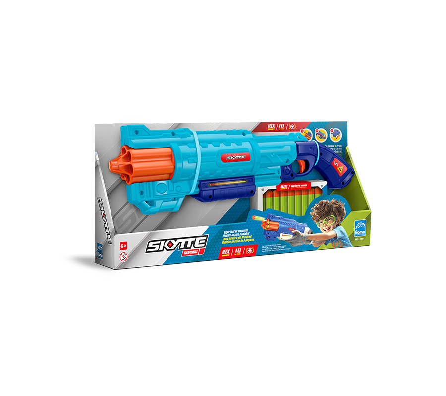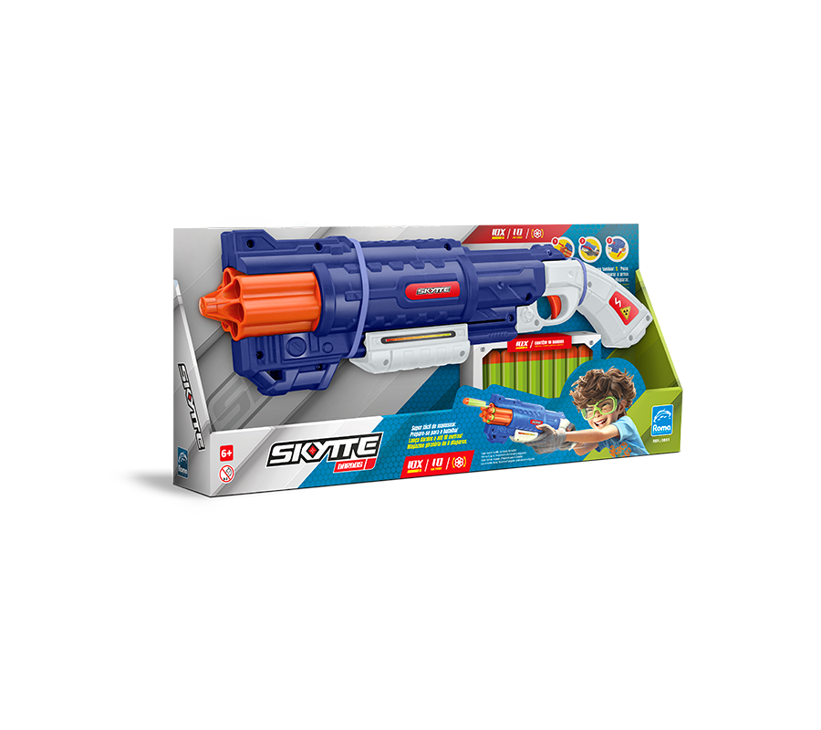 A Roma apresenta o Skytte Dardos, uma novidade que leva a diversão a um novo nível, desafiando a precisão, a concentração e a habilidade em cada jogada. Com 10 dardos inclusos, é só colocar o dardo no tambor, puxar o engatilhador para preparar e apertar o gatilho para disparar! Disponível em duas cores.